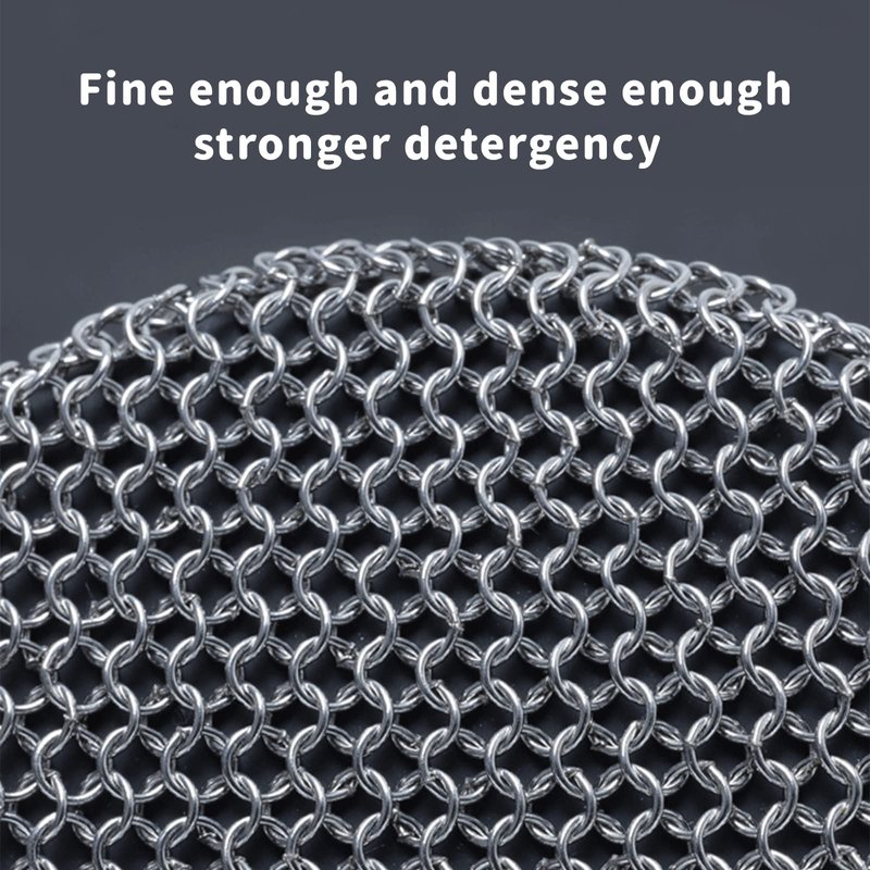 - 【Welded stainless chainmail】- The chainmail is made of high quality and durable 316 stainless steel, which is closely connected and more solid and strong than other chainmail scrubber. This stainless steel scrubber won't crack or rust after long lasting use.