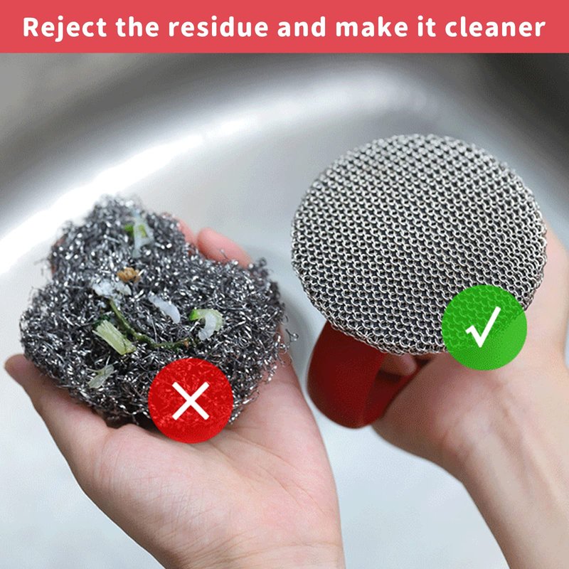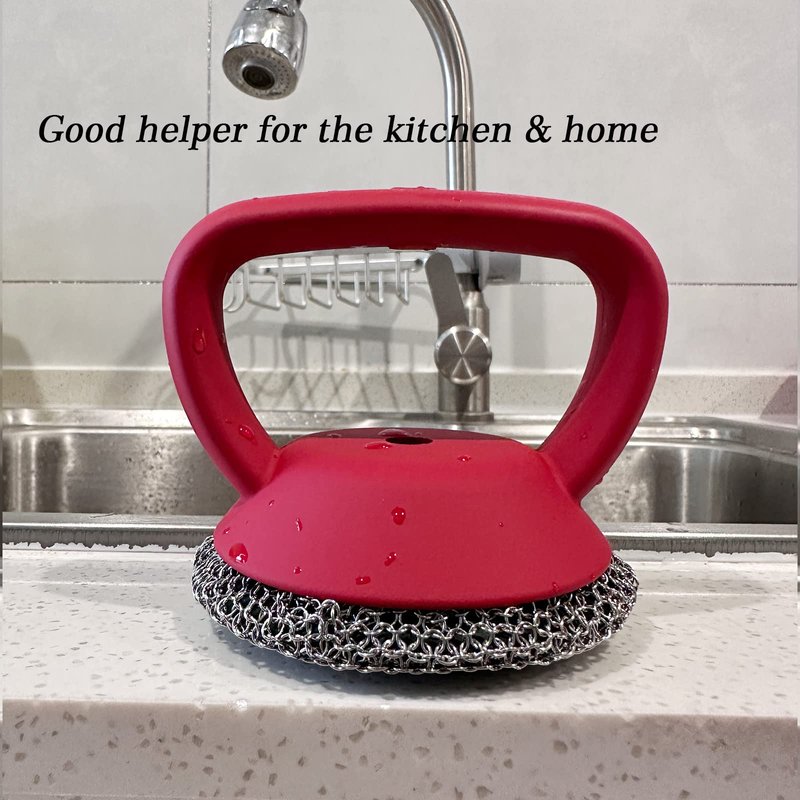- 【Ergonomic design】- With compact and ergonomic shapes and lines in design, cast iron brush silicone handle can provide a better grip to reduce your hands fatigue and keep you away from the chain mail not hurt your hands.
