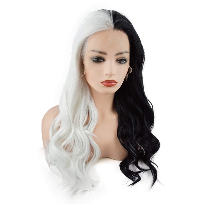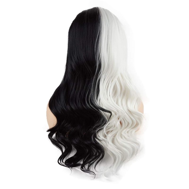 - wavy long 24inch Half Black and Half White Mix synthetic lace front wigs