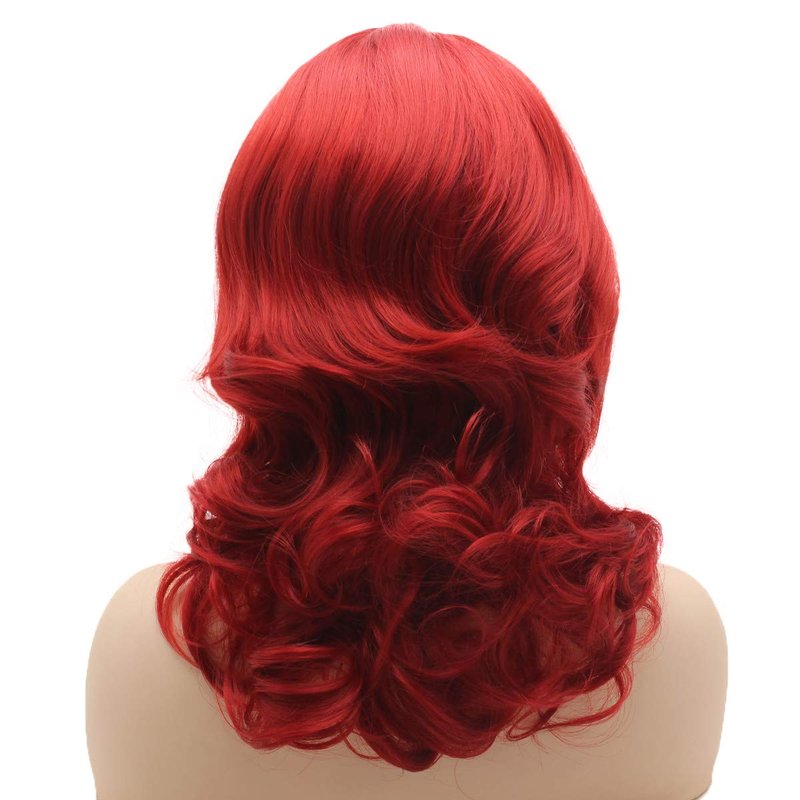 Meiyite Hair Wavy Shoulder Length 16inch Red Half Hand Tied Heat Resistant Synthetic Lace Front Wigs