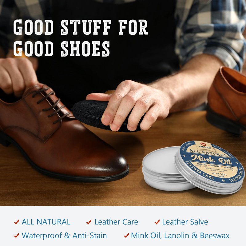 - Waterproof & Anti-Stain: MEKER mink oil acts as a deep conditioning treatment with an added protective shield from harsh conditions. Regular use provides long-lasting protection against water stains, salt, and perspiration stains, preserving breathability. Imported from the USA, MEKER's high-quality products keep your leather items in their best condition.