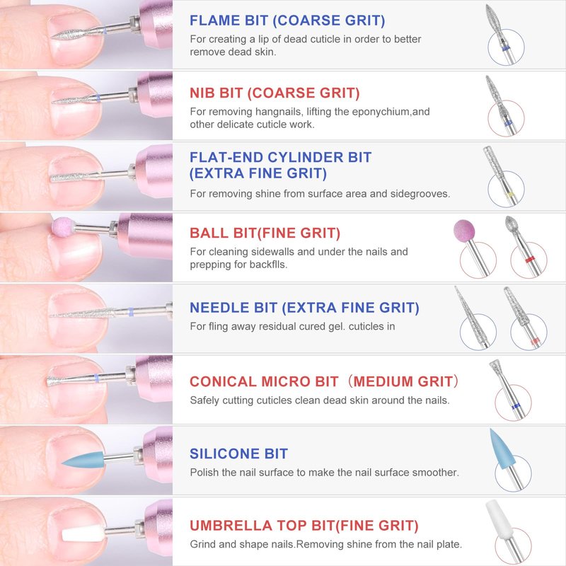 - 【Comprehensive Functions】Not only does it have drilling capabilities, but it can also be used for polishing. It easily cleans cuticles and acrylic resin, trims nail edges, and removes dead skin. Whether for detailed nail treatments or daily care, you can achieve the desired manicure results effortlessly.