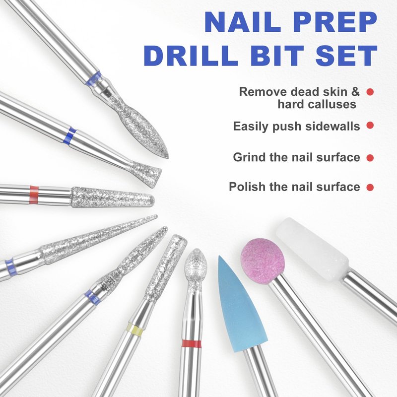 Experience professional nail care with the MEKK 10pcs Nail Drill Bits Set, perfect for both professional nail technicians and DIY enthusiasts. **Premium Materials**: Made of high-precision diamond and metal carbide, these bits are extremely durable and sharp, suitable for hard nails and detailed trimming. **Versatility**: Includes 10 different bits for cuticle cleaning, nail polishing, edge trimming, and dead skin removal. **Professional Design**: Compatible with standard nail drills, these bits are gentle and smooth to use, protecting your skin from harm, perfect for beginners and professionals. **Portable Storage**: Comes with a dust-proof bag for easy carrying and storage. The transparent cover design allows you to quickly find the tool you need. **Durability and Safety**: Heat and corrosion-resistant, these bits remain like new even after long-term use. Crafted with exquisite workmanship, they ensure no damage to nails and skin. Whether at home or in a professional setting, the MEKK 10pcs Nail Drill Bits Set is your ideal choice for perfect nail care.