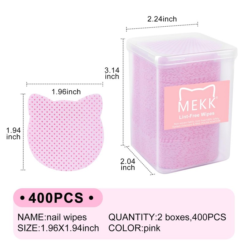 MEKK Lint Free Nail Wipes,400PCS Cat Shape Nail Polish Remover Wipes,Super Absorbent Soft Non-Woven Fabric Lash Glue Wipes,Cleaning Pad Cloth for Lash Extension & Nail Polish Bottle(PINK)