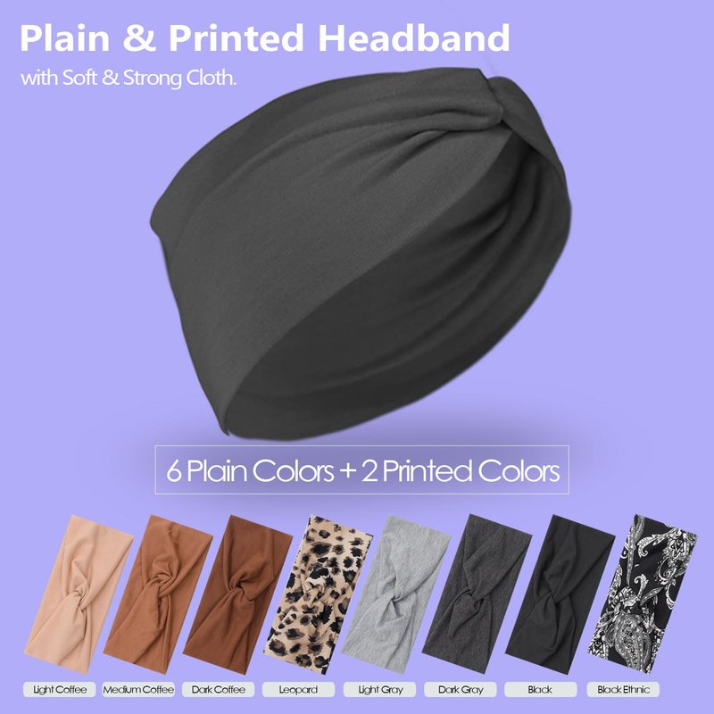 - NICE COLORS AND HIGH PRACTICALITY - We provide 8 colors for this sports headband, including solid colors and bohemian style leopard print and Black Ethnic. You can choose the right color according to your daily wear. It is an excellent choice for daily matching. Suitable for running, tennis, yoga, gym, ballet, makeup, travel, hiking, outdoor sports, makeup, washing face, party, beach, study, casual days and other physical activities.