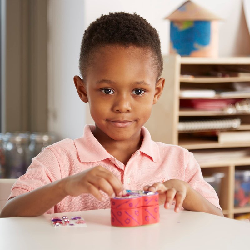 - Includes wooden heart box, 12 gem stickers, 4 pots of paint, paintbrush, glitter glue, and white glue