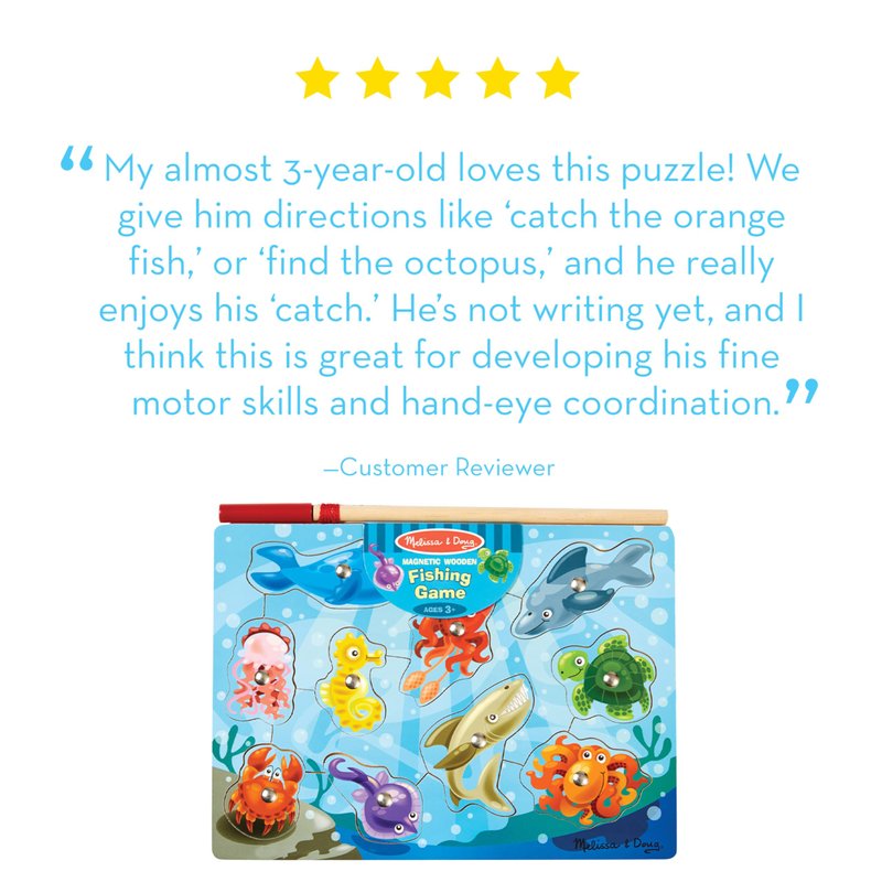 - GREAT GIFT FOR AGES 3 TO 5: Melissa & Doug's Magnetic Wooden Fishing Game is an ideal gift for kids ages 3 to 5. Add the Bug-Catching Magnetic Puzzle Game to round out the hands-on, screen-free play experience.