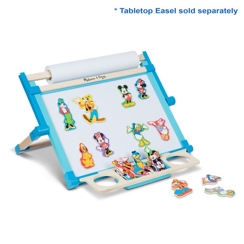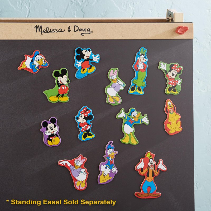 - DISNEY CHARACTER MAGNET SET: The Melissa & Doug Disney Mickey Mouse Wooden Character Magnets set includes 20 colorful magnets such as Mickey, Minnie, Goofy, Donald, Daisy, and more to manipulate and move around on magnetic surfaces.