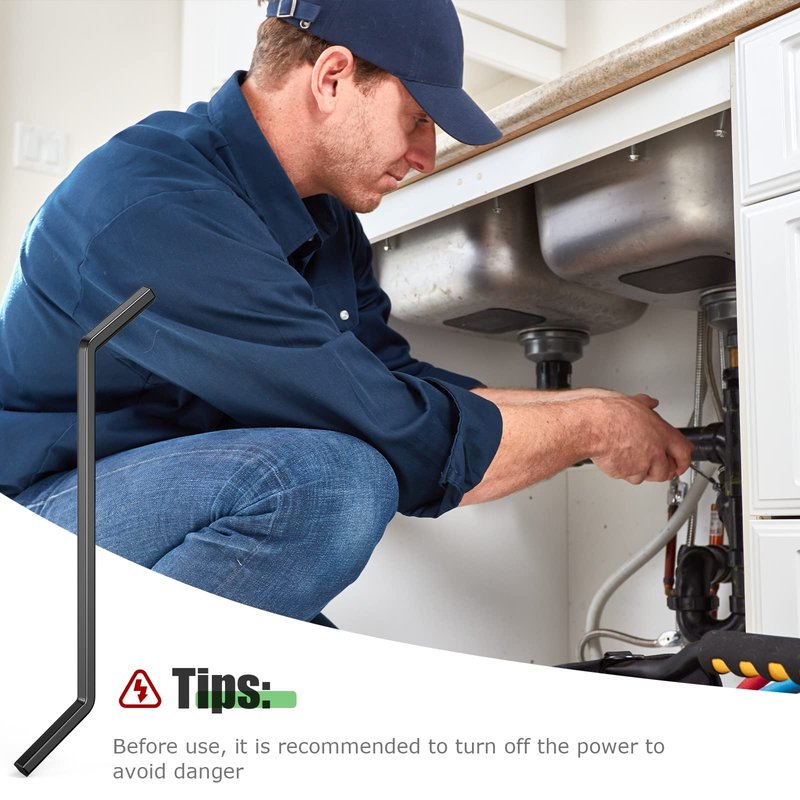 - Easy to Install: Just insert the wrench into the hex socket hole in the center of the bottom of the garbage disposal, turn the wrench back and forth until it can turn freely in both directions, and you can quickly repair and release the garbage. Done in a minute.