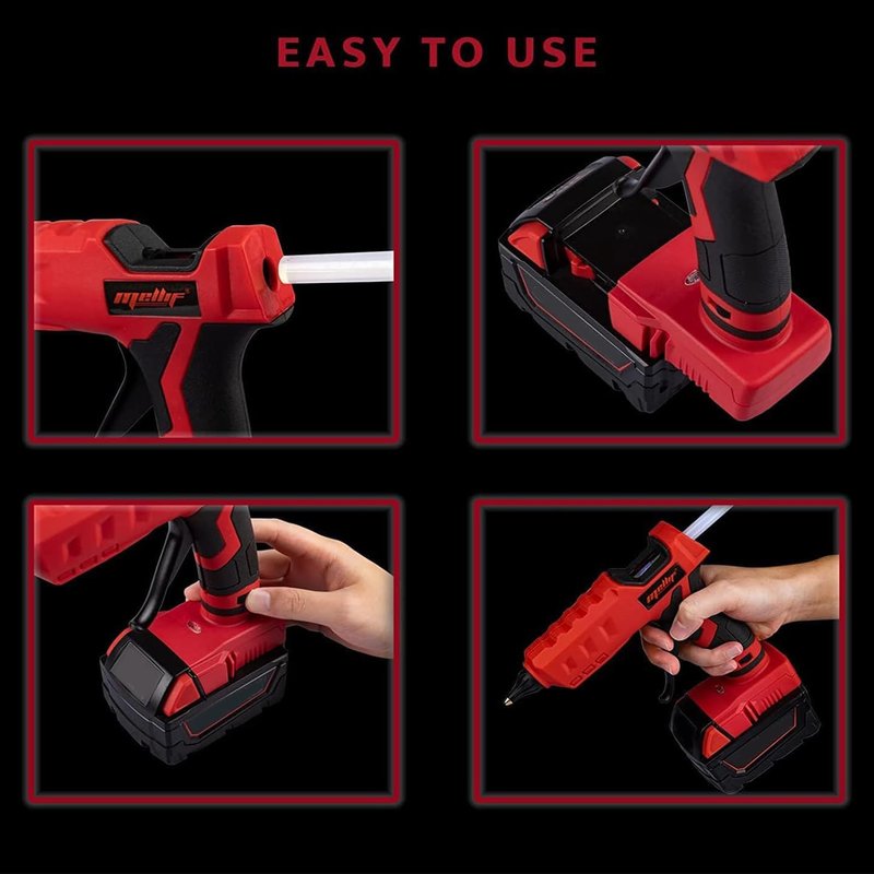 This cordless hot glue gun is designed for Milwaukee 18V lithium batteries Full Size with safety switch & 20 multipurpose glue sticks. Perfect for crafts, arts, home repair, making Christmas decoration and gifts. This workshop glue gun can work well with plastic, glass, paper, cotton, fabric and other materials.