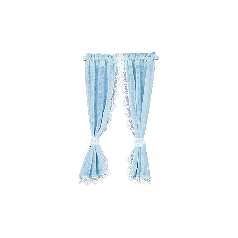 Melody Jane Dollhouse Blue Sheer Curtains on Rail Miniature 1:12 Scale Window Accessory