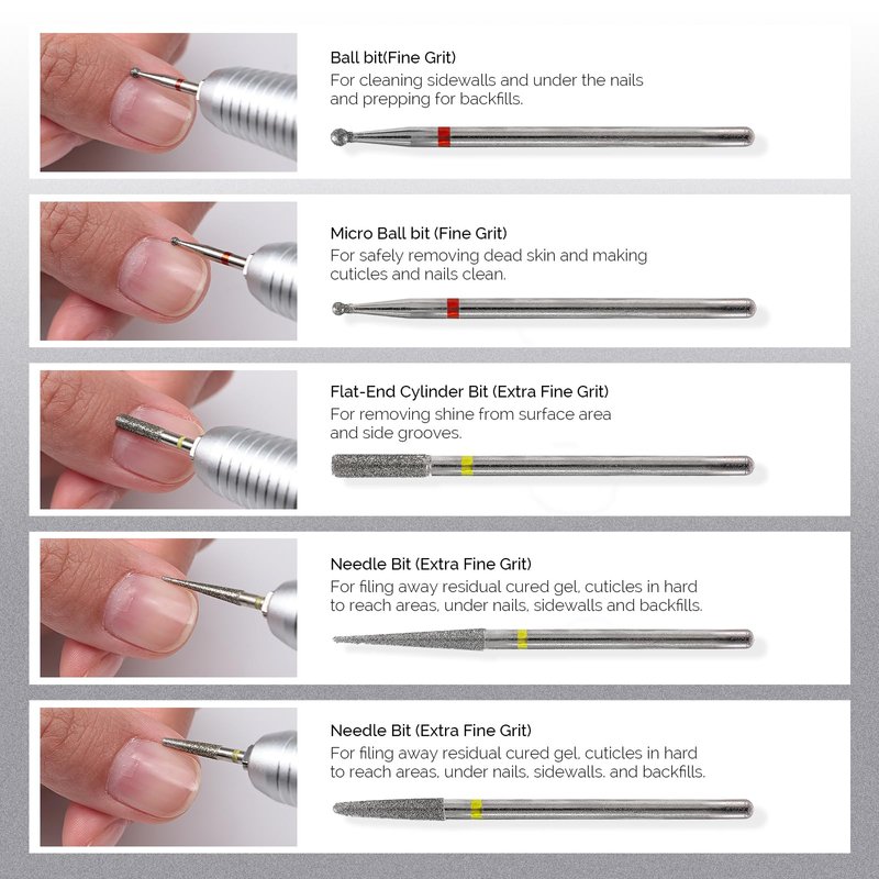- Safety Cuticle Nail Bits: Protect your skin from being harmed with superior craftsmanship and well-tested design. Gentle and smooth used, suitable for Nail Tech or Beginners.