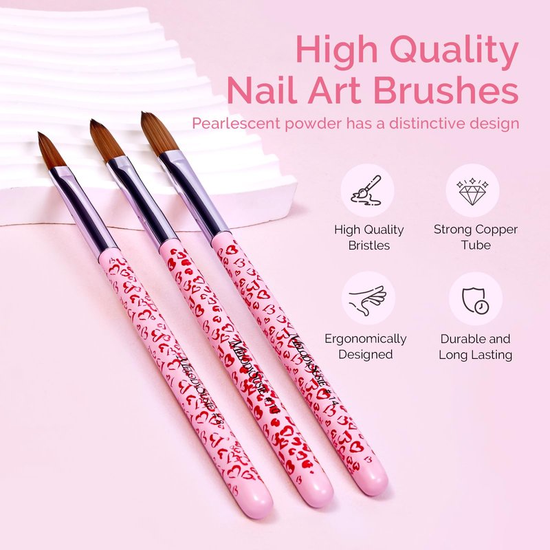 MelodySusie 3Pcs Acrylic Nail Brush Set, Size 8/10/14 Professional Nail Brushes for Acrylic Application Acrylic Powder Nail Art Extension and 3D Nail Carving for DIY Home Salon Nail Art Tool Pink