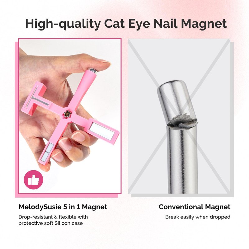 MelodySusie 5 in 1 Nail Magnet, Multifunctional Cat Eye Gel Nail Polish Magnet for Nail Art, Strong Magnetic Nail Polish Magnets Nail Design Tools (Pink)