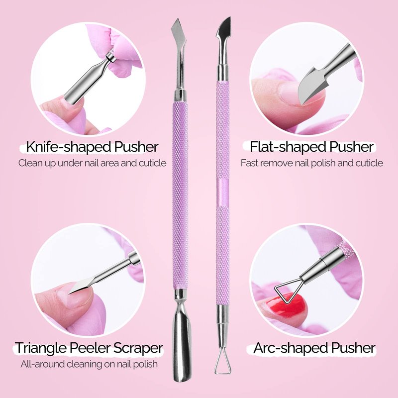 - Cuticle Pusher Remover: Duticle pusher and remover comes with ergonomic and non-slip handle, professional for painless cuticle maintenance. Multifunctional for precisely removing nail polish residues, easily cleaning cuticle even around nails edge, flawlessly pushing back the cuticle dead skin.