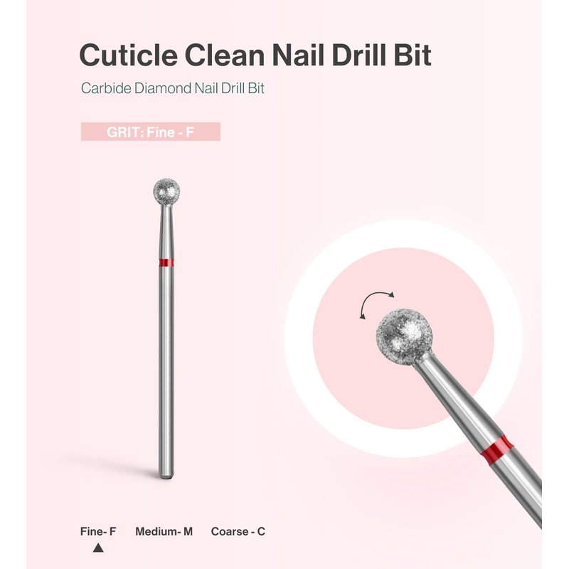 - Carbide Diamond Cuticle Cleaner: Professional design for cuticle removing, sidewall dead skin cleaning, and nail preparation. The ball head bit can gently and effectively remove dead skin and cuticles from the nail bed. Perfect manicure preparation tool for nail salons and professional nail techs.