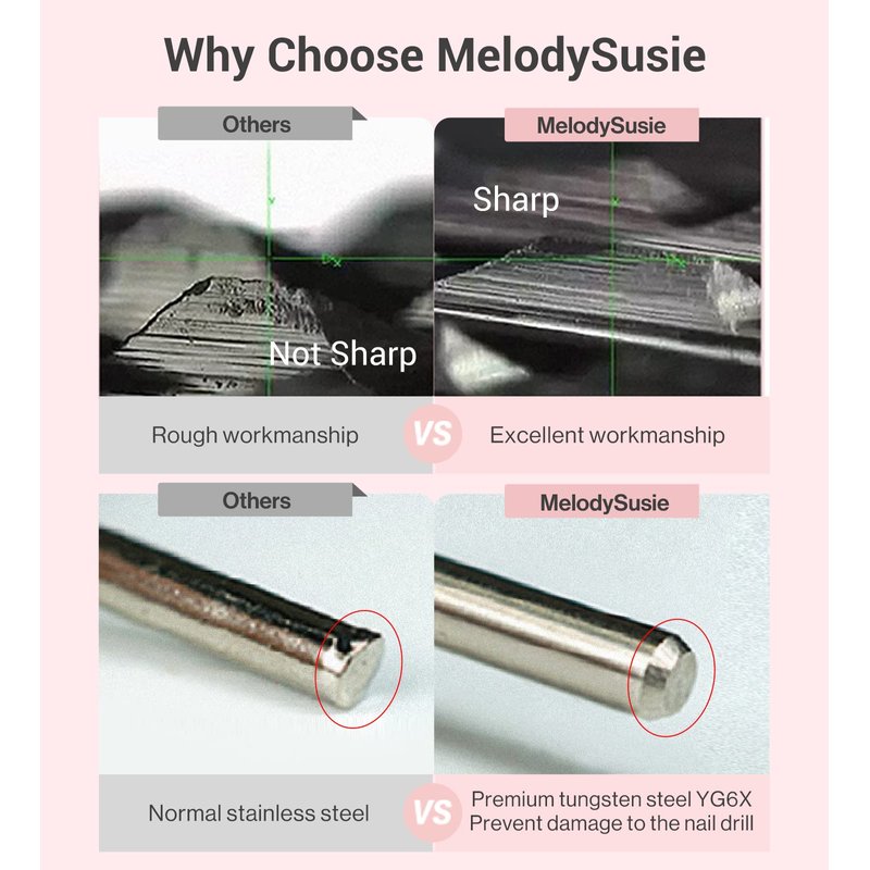 - Professional Carbide Nail Drill Bit: Made of premium strength tungsten carbide material, this high precision machining nail bit comes with excellent heat dissipation, low vibration, low noise, and hard-wearing features. Perfect nail care tool for nail techs and nail enthusiasts.