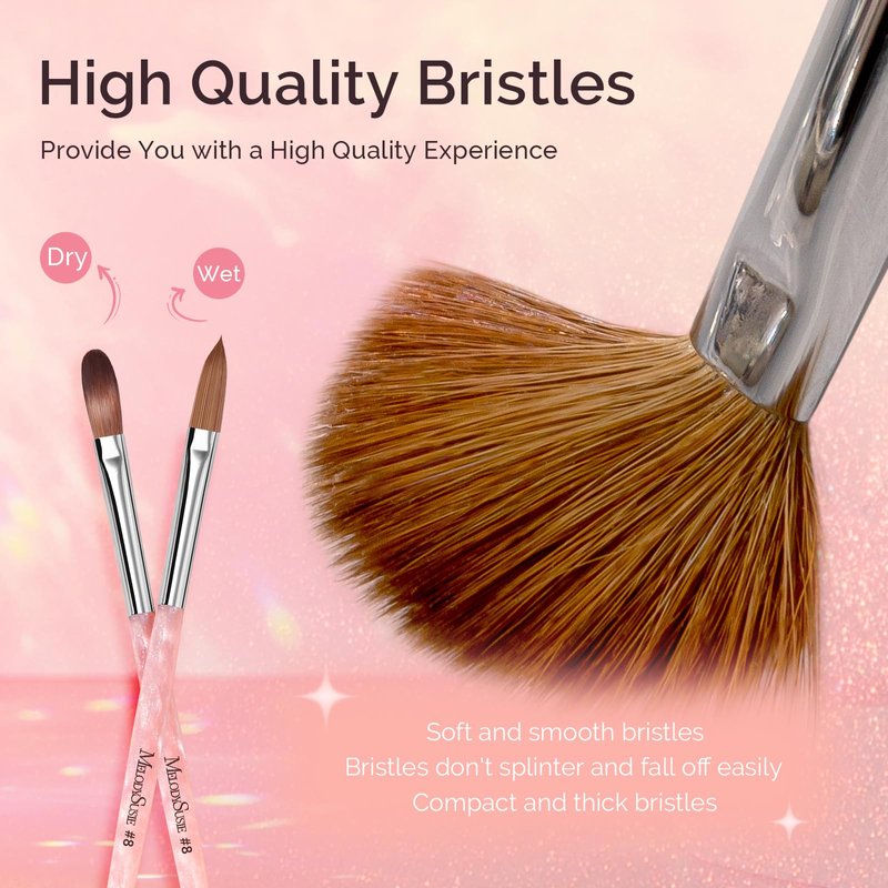 - BEST CHOICE:MelodySusie acrylic nail brushes has been mindfully designed and handcrafted from premium materials to become perfect accessories to compliment your acrylic nail needs. Multiple sizes are available, perfect for home or salon use, professional manicurists or beginners use.Our nail brush handles are handcrafted, so each brush may vary in color intensity.