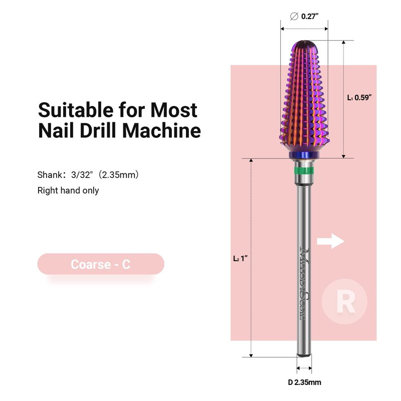 - Right Hand Use: With one direction working direction, this carbide nail drill bit only works for right-hand use, also suitable for both left-handed and right-handed use if your nail drill machine has forward and reverse functions.