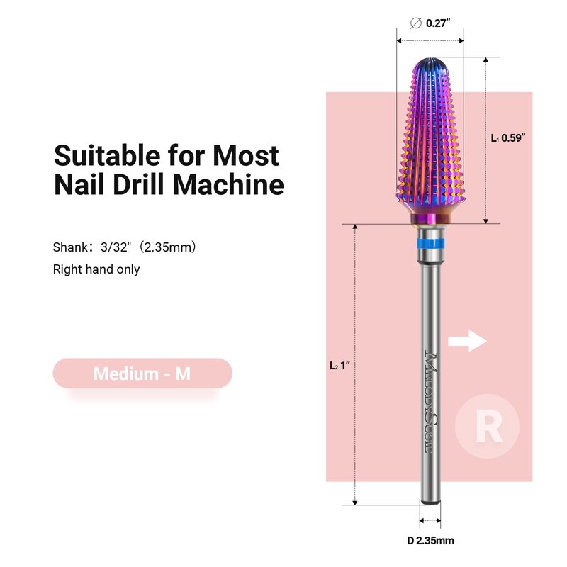 - Fits Well with Most Nail Drill: Universal 3/32" (2.35mm) tungsten steel shank perfectly suits most professional electric nail drills on the market. These tornado bits are suitable for salons to make manicures and pedicures. Please note that to prevent breaking, the nail drill bits cannot be dropped.