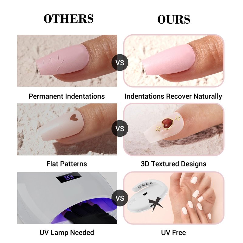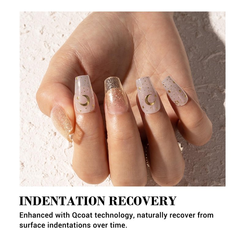 - Indentation Recovery: Our gel nail wraps, enhanced with Qcoat technology, naturally recover from surface indentations over time, ensuring a consistently flawless look.