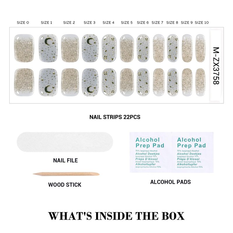 - Time-Saving Convenience: Achieve a perfect manicure in just three steps: Peel, Stick, File! No drying time required. Each kit includes everything you need: 22 Nail Strips, 2 Cleaning Wipes, 1 Wood Stick, and 1 Nail File.