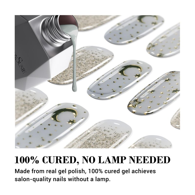MelodySusie Qcoat Fully Cured Gel Nail Strips (Golden Stars) - UV Free Nail Polish Strips, Salon-Quality, Long Lasting Gel Nail Stickers, Includes 22 Nail Wraps, 2 Prep Pad, Nail File & Wooden Stick