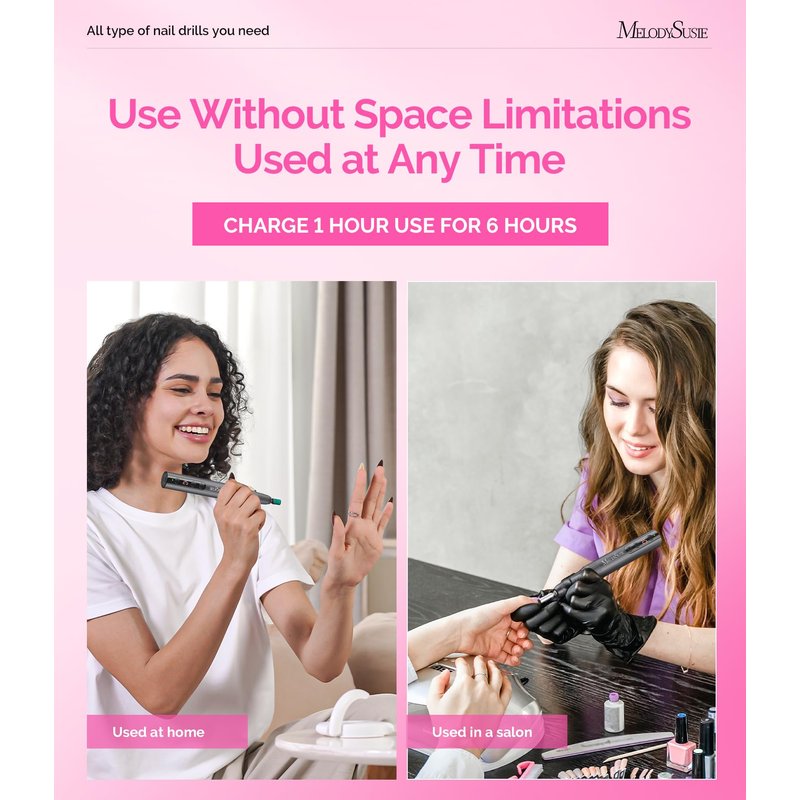 - PC180E Cordless & Recharge: No need to be troubled by the adapter connection, cordless rechargeable nail drill, compact and lightweight, no burden to carry around, charging in just 1 hour, use up to 6 hours, home travel manicure good tool.