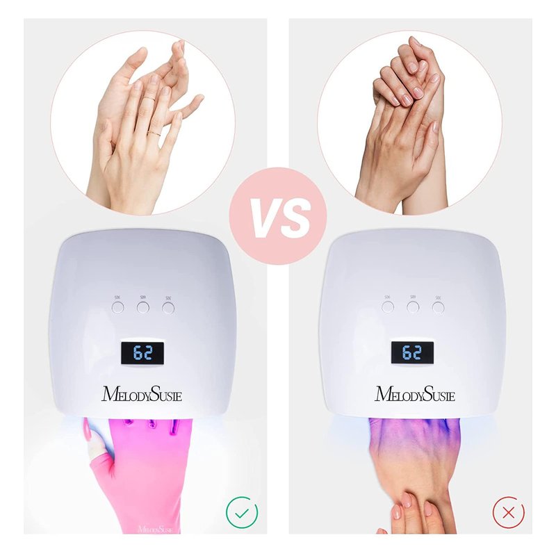 The MelodySusie Shield Gloves block 99% of Rays, so you can enjoy your gel manicure without worrying about any possible cell damage from Lamp; LED lamps!