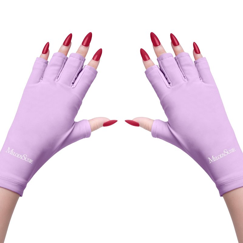 MelodySusie UV Gloves for Gel Nail Lamp, Professional UPF50+ UV Protection Gloves for Manicures, Nail Art Skin Care Fingerless Anti UV Glove Protect Hands from UV Harm (Purple)