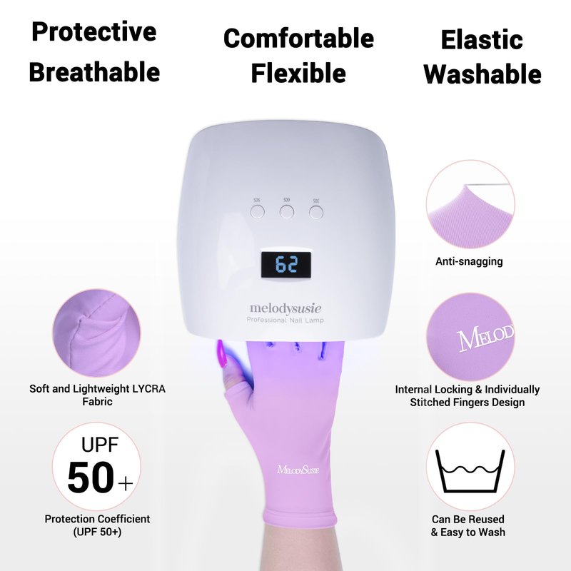 The MelodySusie UV Shield Gloves block 99% of UV Rays, so you can enjoy your gel manicure without worrying about any possible cell damage from UV Lamp; LED lamps!