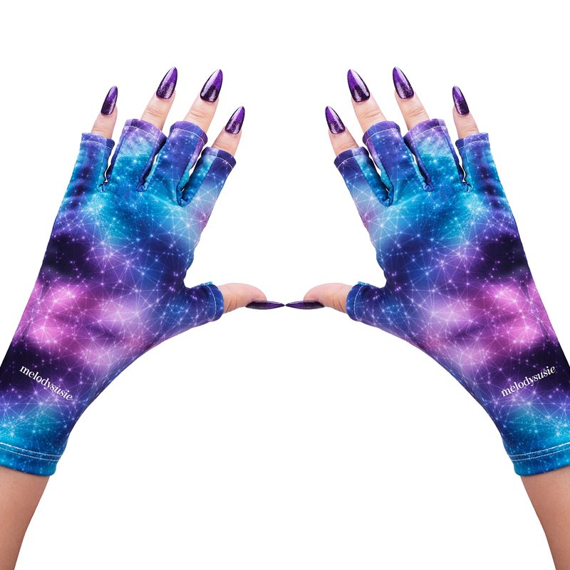MelodySusie UV Gloves for Nails, UV Lamp Gloves for Manicures Protection, Starry Night Gel Manicure Gloves, Nail Art Skin Care Fingerless UV Shield Gloves