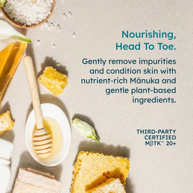 - Manuka honey’s soothing power – experience the magic of Manuka honey, renowned for its potent skin-healing properties. As a natural humectant, Manuka body wash locks in moisture, nourishes, & softens your skin