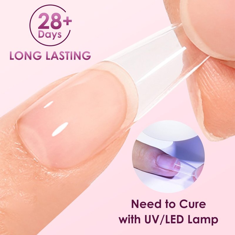 - Long Lasting for 28 days: with nail lamp cure, this nail glue can help nail tips long last for 28days, no break, strong stickiness, ensure the fake nail tips stay on the nails for 4 weeks