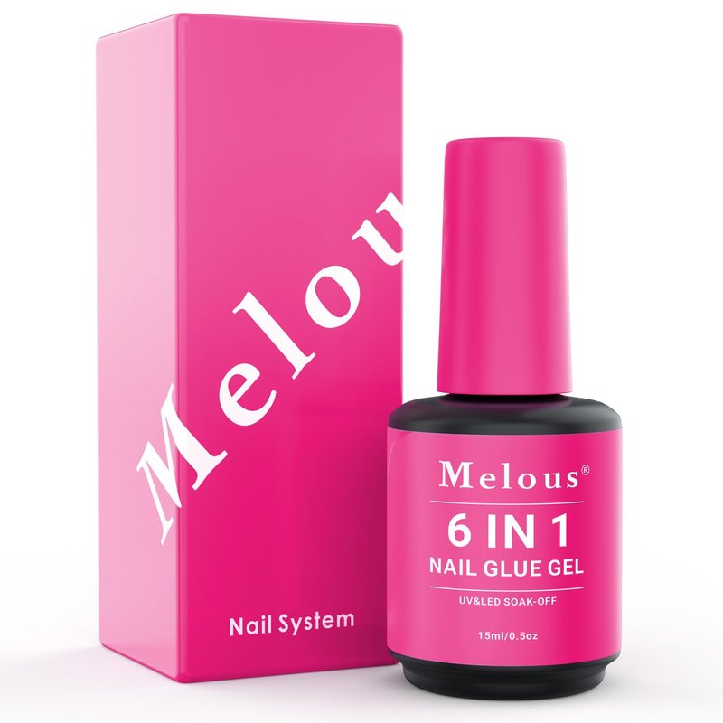 - Nail Tips Glue: Melous 6 in 1 nail glue gel helps stick nail tips quickly and easily, the glue didn't peel, chip, shift, or pop off the natural nail. Durable glue and long lasting for press on nails, false nails, soft gel nail tips
