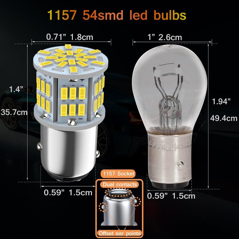 - Fitment: The 1157 led light bulbs are compatible with BAY15D 2057 2357 7528 1016 1034 1035 1154 1493 1196 2397 3496 P21/5W Socket.