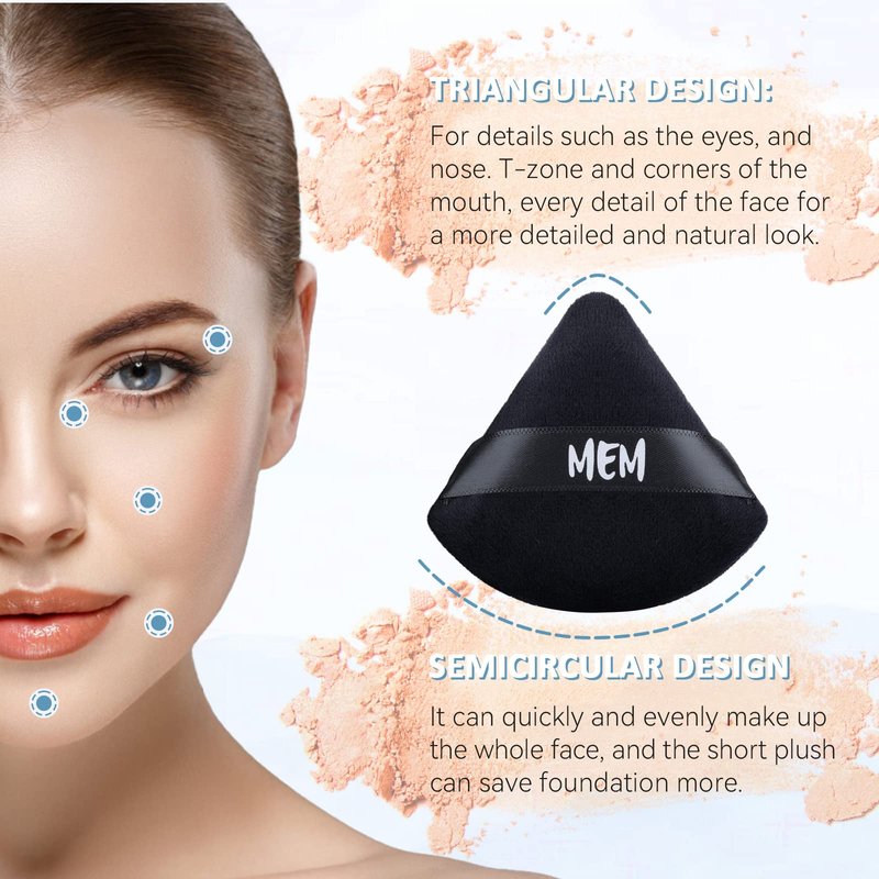 - 💖Precise Application: The MEM triangle powder puff features a unique triangle design that enables precise makeup application, with a rounded side for larger areas and a triangular end for delicate the nose, under the eyes, and corners of the mouth.