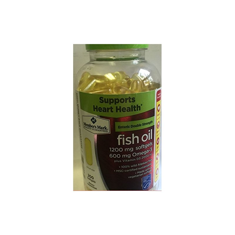 Member's Mark Enteric Double Strength Fish Oil 1200mg Softgels 600mg Omega-3 EPA DHA Plus Vitamin D3 2000 Iu (2 bottles (400 softgels)) by Members Mark