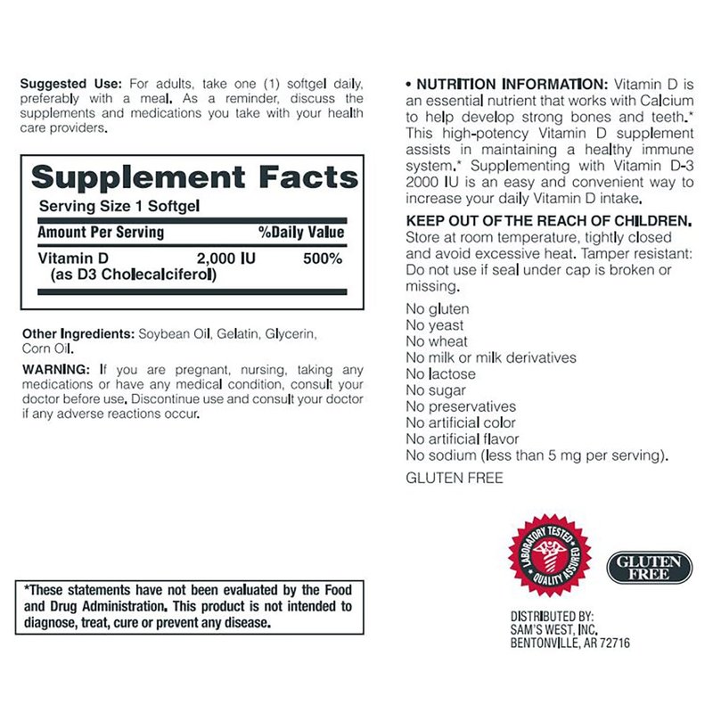 Member's Mark Vitamin D-3 2000 IU, 400 Softgels Dietary Supplement