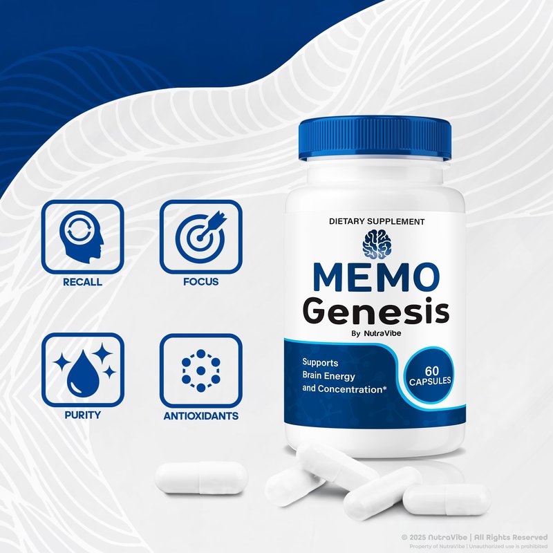MemoGenesis – Daily Support Formula with a Natural Blend to Help Maintain Clarity, Focus & Everyday Alertness | Easy-to-Swallow Memo Genesis Pills for Everyday Use (60 Capsules)