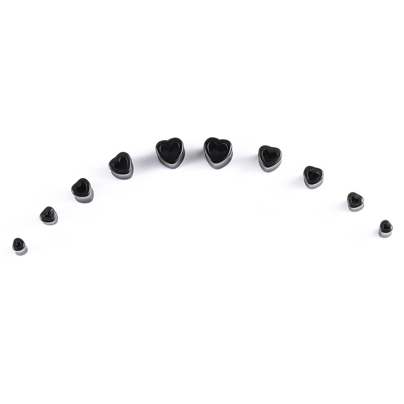 Heart gauges : 6G (4mm), 4G (5mm), 2G (6mm), 0G (8mm), 00G (10mm).