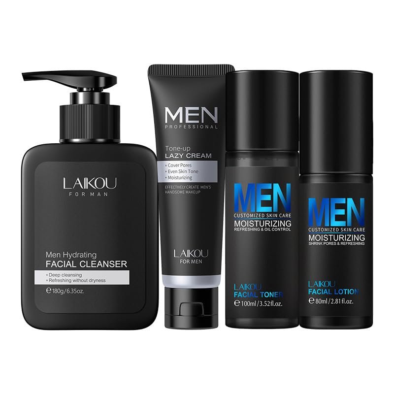 Men Skin Care Set, Facial Cleanser, Tone Cream, Toner, Lotion, Moisturizer, Cleaning