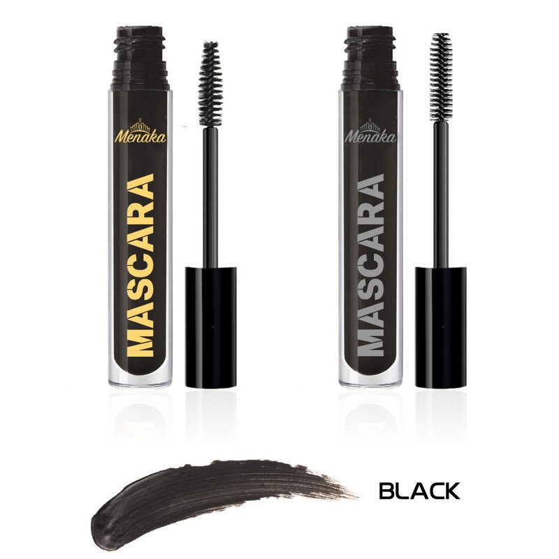 MENAKA Black Mascara, Voluptuous Volume, Intense Length, Feathery Soft Full Lashes, No Flaking, No Smudging, No Clumping, 2 Count (Black Mascara)