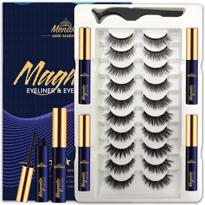 Menaka Magnetic Eyelashes Magnetic Lashes with Eyeliner,Magnetic Lashes Natural Looking,10 Pairs Reusable Magnetic Eyelashes kit,False Eyelashes,Cruelty-Free(4 Tube of Liner)