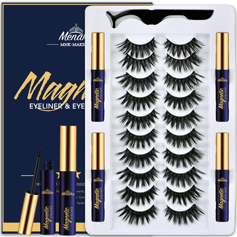 Menaka Magnetic Eyelashes with Eyeliner Kit- 3D Cat-eye Magnetic Lashes Kit with Applicator,Updated 4 Tubes of Magnetic Liner & Natural Look, Reusable, Easy to Apply 10 Pairs