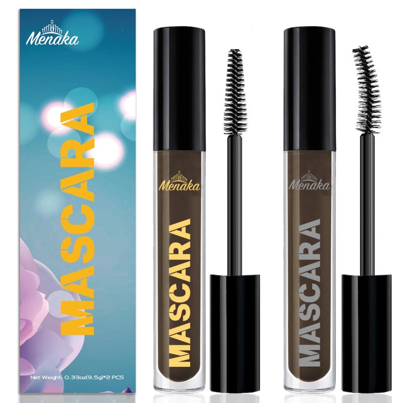 MENAKA Mascara Volumizing, Lengthening, Defining, Curling, Waterproof Mascara Set, Holiday Gift for Beauty Lovers,Vegan & Cruelty-Free,Brown,2 Count