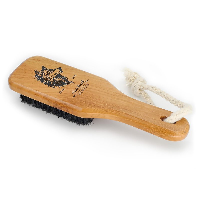 Menesia Soft Bristle Brush - Boar Bristle for Men and Women, Slicking Back, Fine and Sleek Hair - Beard Brush (wolf)