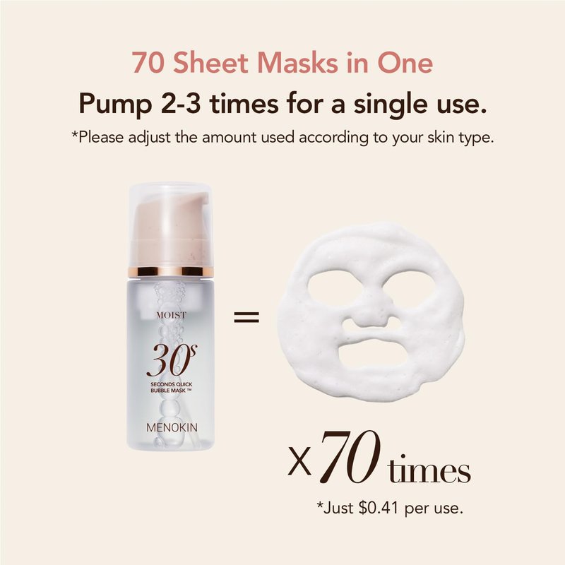 MENOKIN 30 Seconds Quick Bubble Mask(MOIST), Hydrating Korean Facial Mask, 8 types-Hyaluronic acid,Moisturizing,Easy-to Use,Glass Skin,3.21 fl.oz
