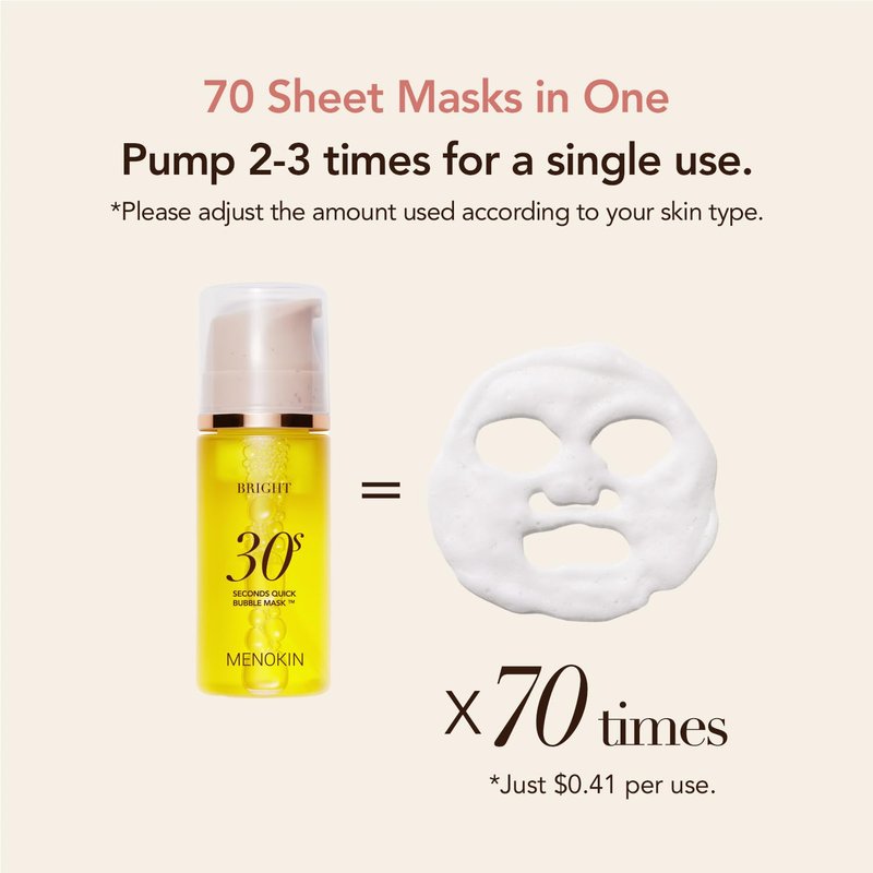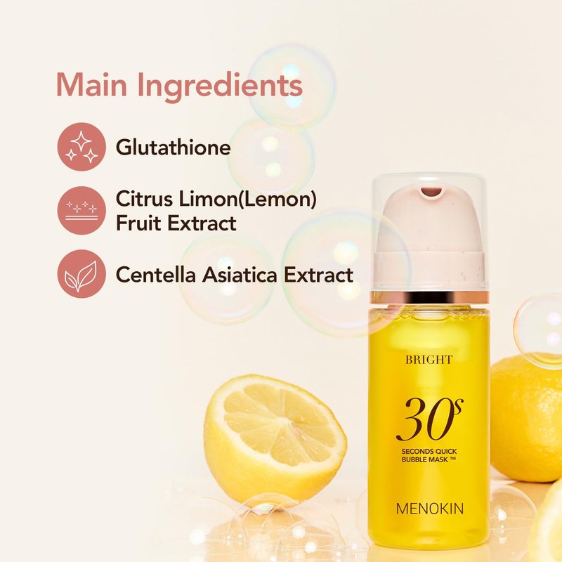 MENOKIN Korean Face Mask [30 Seconds Quick Bubble Mask] [BRIGHT] Glutathione & Vitamin mask, Radiance-boosting, Easy to Use,Glass Skin, 3.21 fl.oz