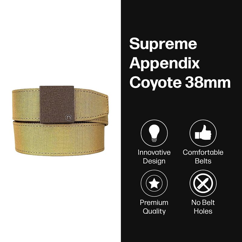 - "SPECIAL APPENDIX CARRIER DESIGN - Never wear a standard leather belt with holes again. We designed the Supreme Appendix belt specifically for the appendix carrier. With our most compact buckle design and incredibly adjustable latch system, you’ll have all the room you need to carry your firearm and even extra magazines upfront in comfort. The buckle can be worn front & center, on your left or right hip, or hidden near the curve of the back. "